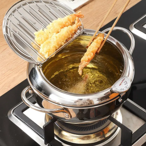 Fritadeira de Acero Inoxidable con Medidor de Temperatura y Escurridor Incorporado